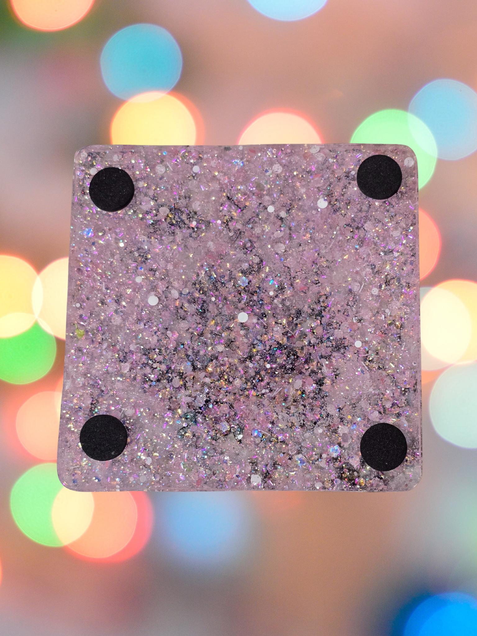 4 inch Coater with feet on back. Pink, white and gold glitter. Decal love yourself first. Swelling. This is made from resin and decaled. It has a nice dome top coat. Handwash only with a damp rag and mild soap.