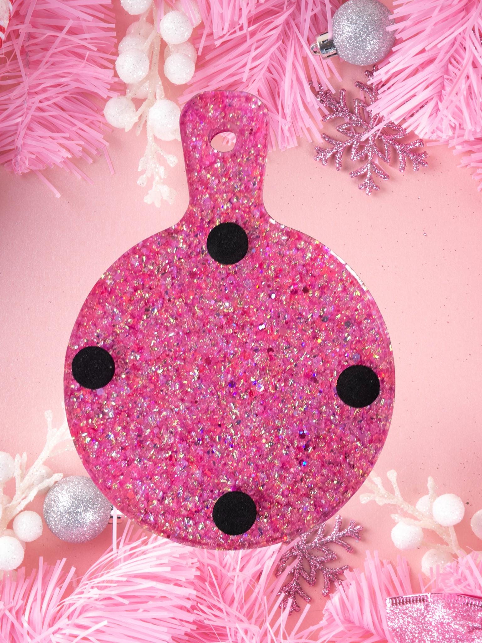 4×5.75 inch Pink and Gold glitter hangable coaster. Decal country Pink truck with a tree. Handwash only with a soft cloth and mild detergent.