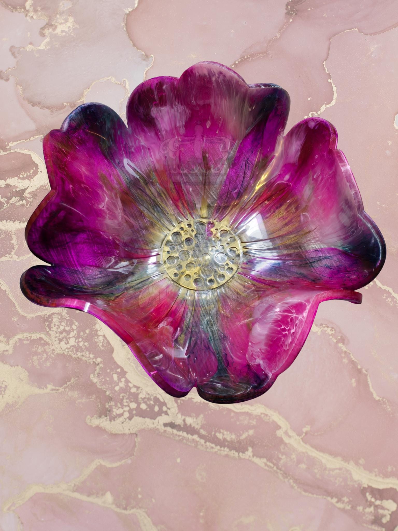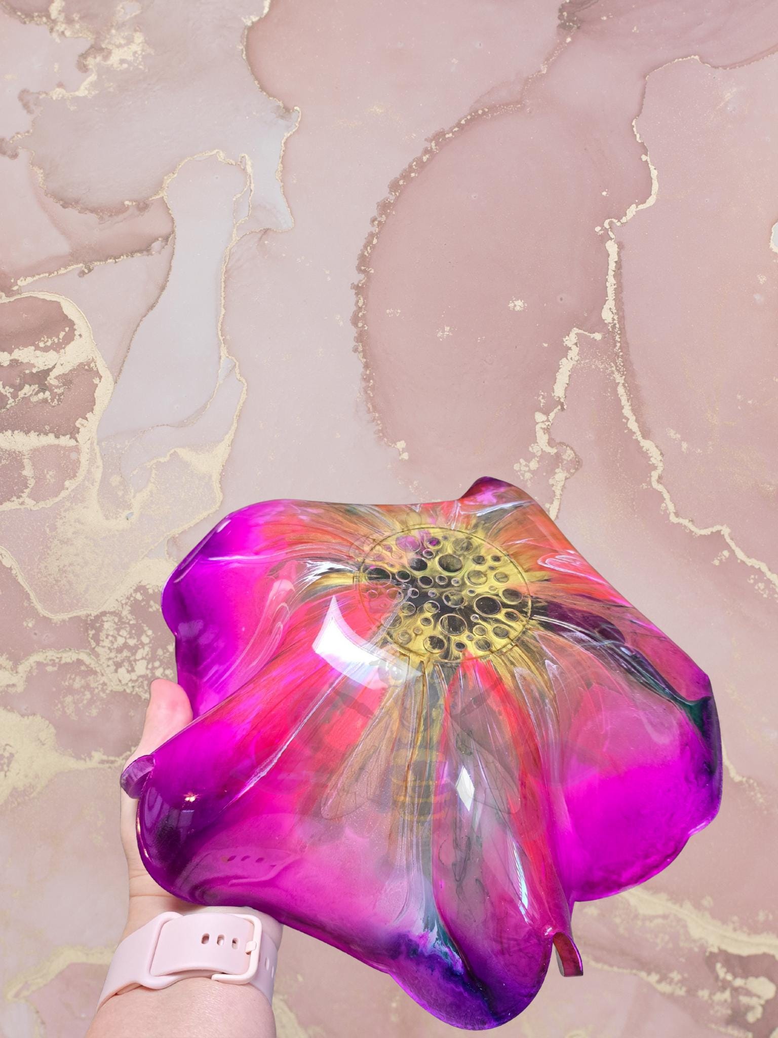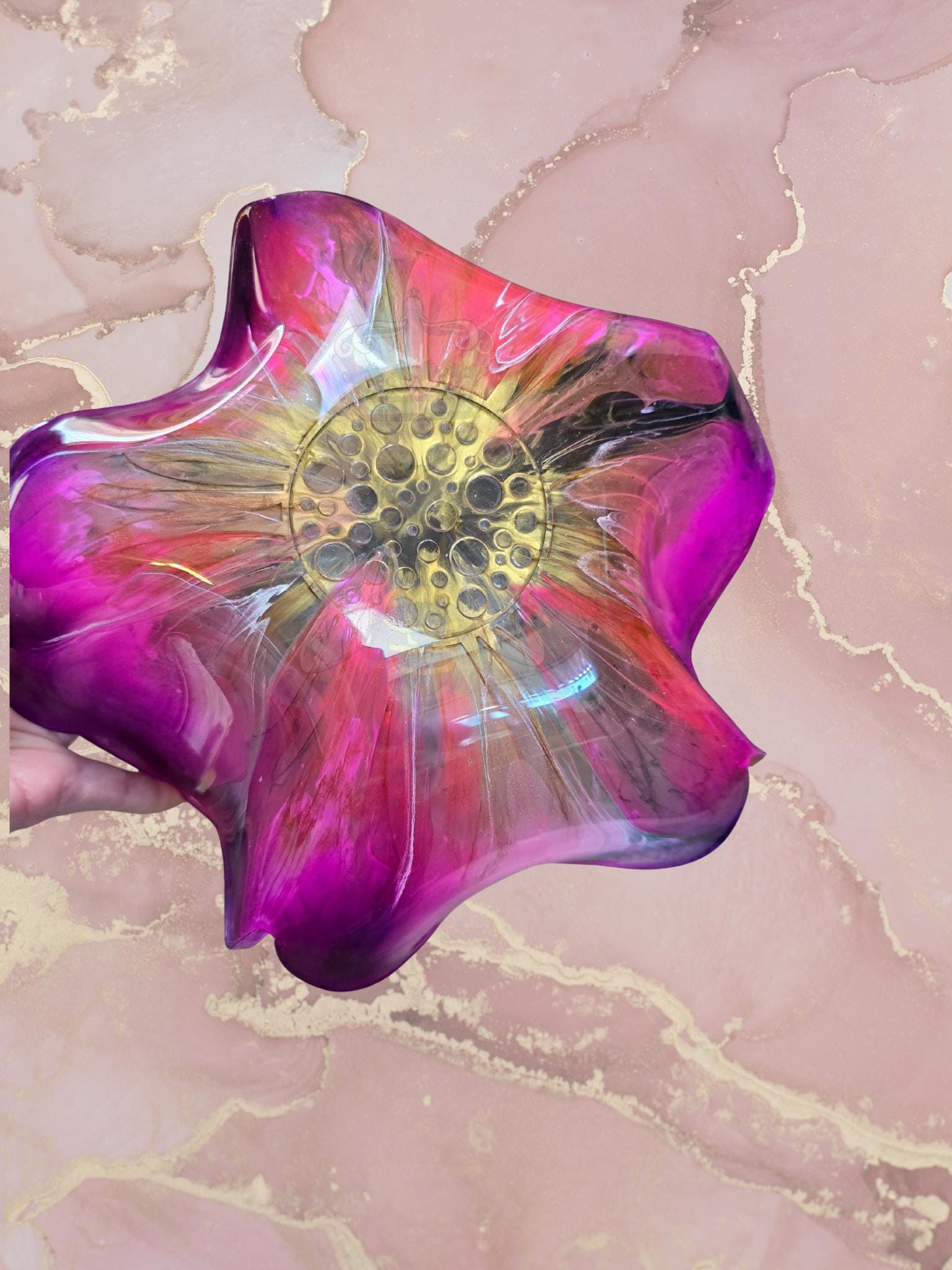10.5 inch decorative alcohol Ink and resin bowl. This bowl is a one of a kind handmade item. Color of alcohol Inks used is Pink, Blue, Purple, White, Gold. These colors blended in a magical way to create the art you see.